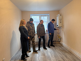 На текущий момент работы почти завершены: выполнен монтаж газового оборудования, систем водоснабжения и канализации, электропроводки, установлена сантехника и проведена внутренняя отделка помещений.